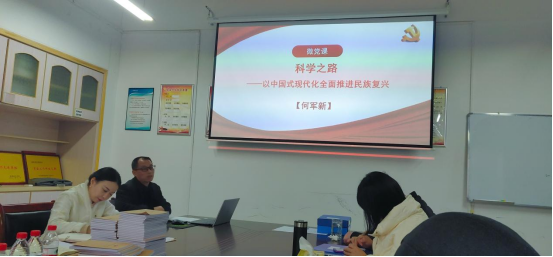 本次党课按照书记带头宣讲原则,由公司党总支书记何军新主讲,公司全体教师党员听取党课。何军新以《科学之路——以中国式现代化全面推进民族复兴》为党课主题,围绕六点展开讲述:一是中国式现代化的定义;二是中国式现代化的特点;三是中国式现代化的本质要求;四是全面建成社会主义现代化强国总的战略安排;五是未来五年的主要目标任务;六是建设中国式现代化必须牢牢把握的重大原则。