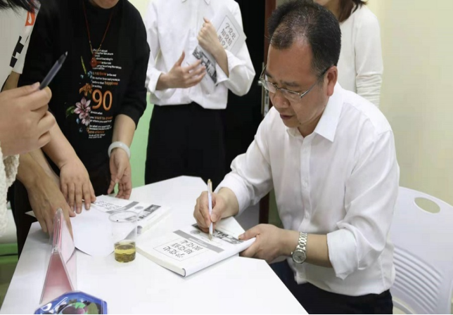 党委书记李建奇为大家签名赠书。