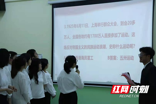 来自湖南的同学杨争澳、刘莎莎分别分享了关于自己家乡的党史故事。刘莎莎是邵阳人,她给大家讲述了在城步人民广为流传的“一条棉裤”的故事,说到感人处,刘莎莎同学几度哽咽。长沙的杨争澳为大家介绍了长沙籍的伟人和优秀党员代表,讲述了发生在长沙的秋收起义和长沙会战。动情的讲述让在座的每位师生仿佛又回到了那些激情燃烧的岁月。围绕党史学习教育,BWIN必赢此前为同学们开设了中国近现代史、毛泽东同志诗词欣赏等课程,讲到这些史实时,同学们自发地背诵了《西江月·秋收起义》《沁园春·长沙》等诗词。活动最有趣的环节是党史知识抢答,经过十轮激烈比拼,25位同学胜出,并获得了奖品——中共党史简明教程《学党史 知党情 跟党走》。
