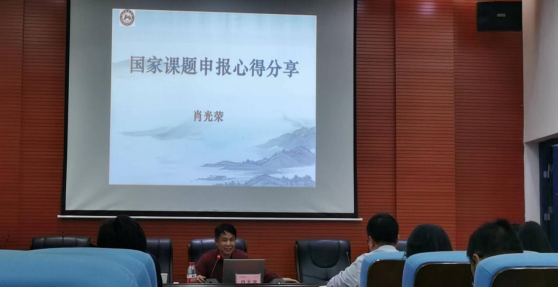 肖教授从课题的重要性、课题申报存在的问题以及课题申报书的书写等方面跟大家分享了他申报国家课题的心得体会。他从自己的亲身申报体验出发,就如何确定申报课题、如何撰写研究内容以及申报的注意事项等方面进行了详细的讲解。肖教授认为课题的选取应该关注基层社会现象,根据现象产生对策性的思考,为基层治理提供参考。