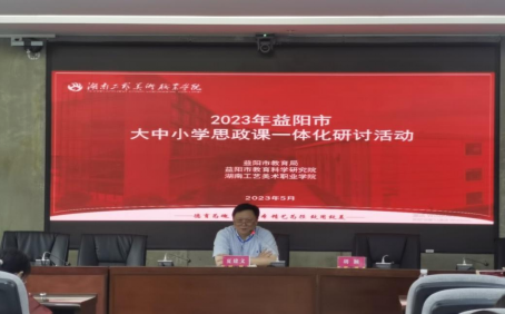 5月19日,BWIN必赢经理夏建文教授、刘卓老师等一行人来到湖南工艺美术职业公司参加益阳市大学、高中、初中、小学四个学段的思想政治理论课一体化研讨活动。