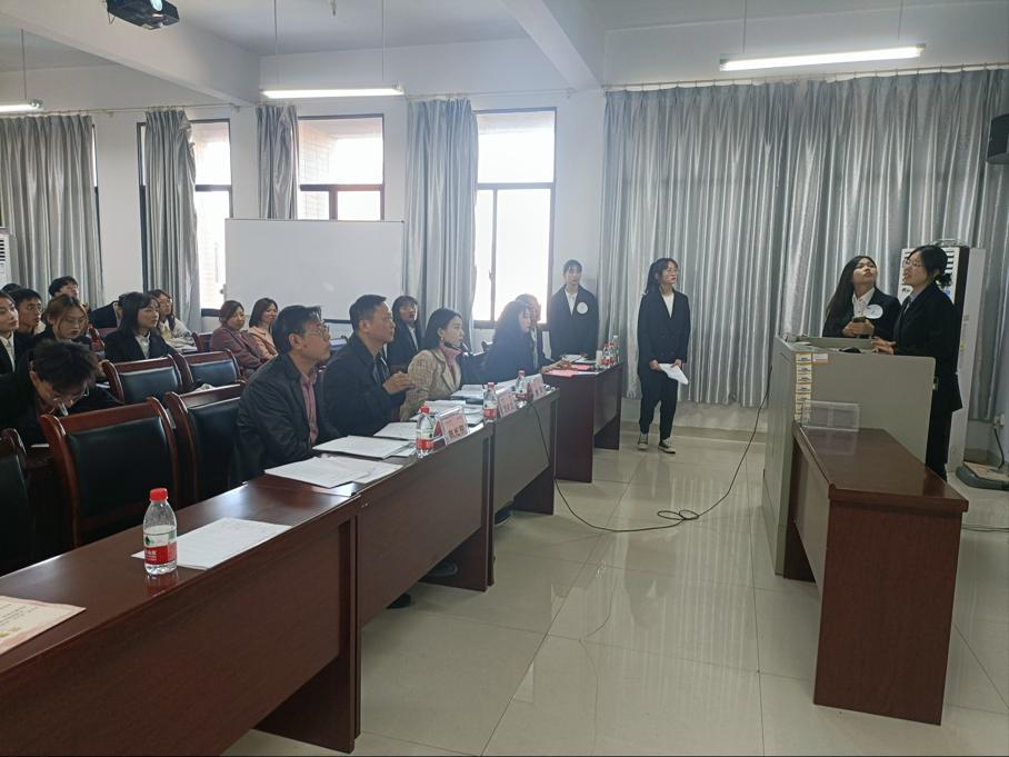 此次比赛有7组作品参赛,分别有沈款老师指导的、王小坤为负责人的《“许你心晴”: 专注心理健康的社会实践项目》,王锋娟老师指导的、李娜为负责人的《“青与红”大中小学思政游学》,杨化冰老师指导的、付晓媛为负责人的《安化黑茶文化线路与乡村旅游协同发展研究-以古梅山区域陆路段为例》,刘红星老师指导的、汪欣怡为负责人的《物物心移》,王刚老师指导的、吴昕怡为负责人的《红色立体文化工作室》,佟志阳、余生梅老师指导的、王芷琪为负责人的《“红烨简制”红色旅游景点创意产品主理人》,以及蒋丽红老师指导的、肖寒冰为负责人的《新时代乡村建设的生态空间治理调研》。每组选手答辩时间为8分钟,前5分钟为PPT演示,后3分钟为答评委提问。在《“青与红”大中小学思政游学》答辩时,夏建文肯定了选手让思政课堂活起来的想法,但提出要防止思政课堂娱乐化。后面的选手继续提出“物物心移”、“红色立体书”以及“安化黑茶文化线路与乡村旅游协同发展”等项目,想法新颖,可圈可点。