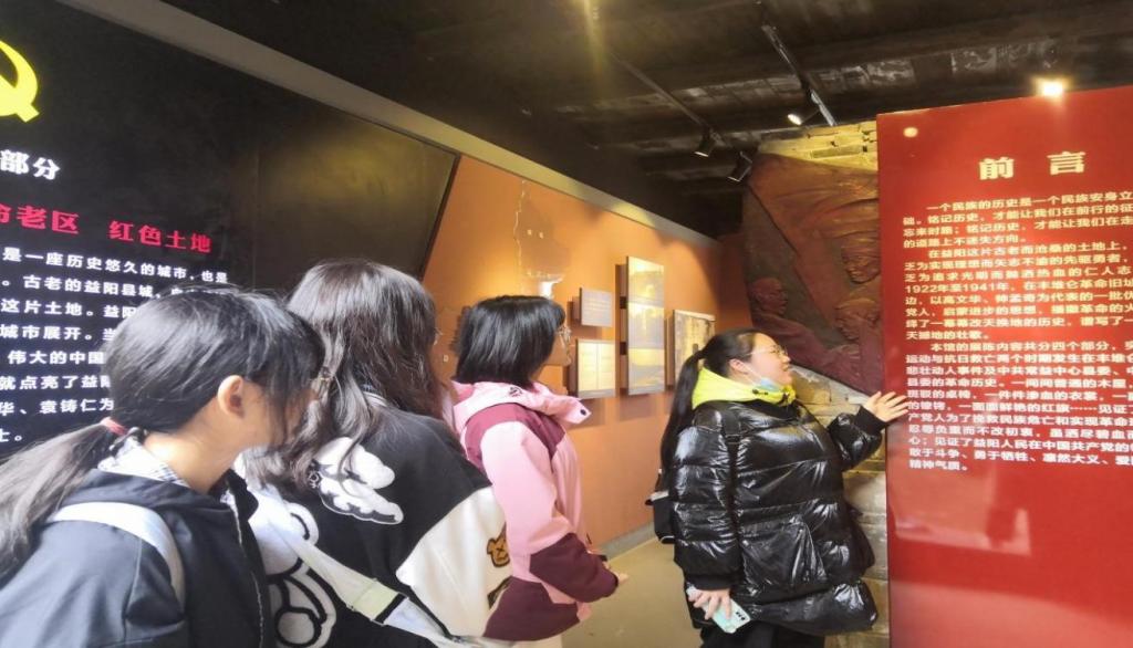 (同学们在益阳市博物馆参观益阳百年历史红色文物展)