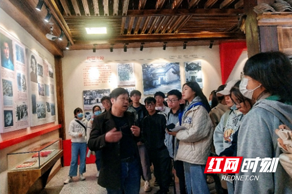 走进中共金家堤支部纪念馆,一股强烈的革命气息扑面而来。“中共金家堤支部是湖南省第一个农村党支部,也是全国最早的农村党支部之一。”王阳华老师和金家堤党总支副书记刘亮清一同为同学们讲解中共金家堤支部的创建与发展史。同学们认真聆听,仔细观看,为益阳的革命先辈们艰苦奋斗、敢为人先的精神深深折服。
