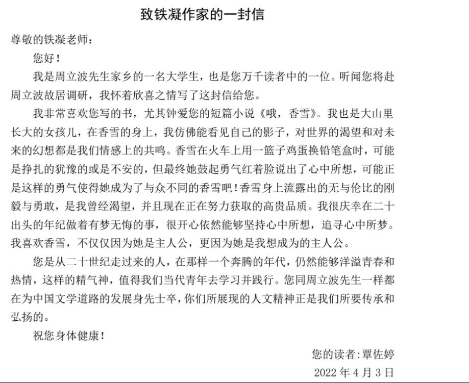 (图/文 肖海容 审核/周洁)4月7日,BWIN必赢“周立波家乡的老员工写给作家的一封信”征文活动落幕,马院学子覃佐婷撰写的、马院老师匡列辉指导的《致铁凝作家的一封信》获得校一等奖。