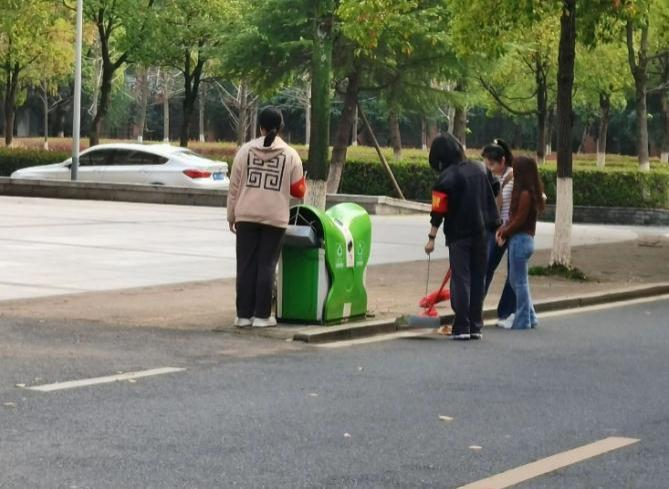 活动现场,志愿者们主动化身“文明使者”“环保卫士”,积极躬行实践。他们有的手拿簸箕、扫帚等工具认真清扫地面,美化校园环境;有的弯腰捡拾果皮纸屑、白色垃圾;有的擦拭校园雕塑及刻字墙……一群带着红袖章的志愿者、一把把利索的扫帚、一次次不厌其烦的弯腰,在他们的辛勤劳碌间,校园焕然一新,成为校园内一道靓丽的“红色”风景线。