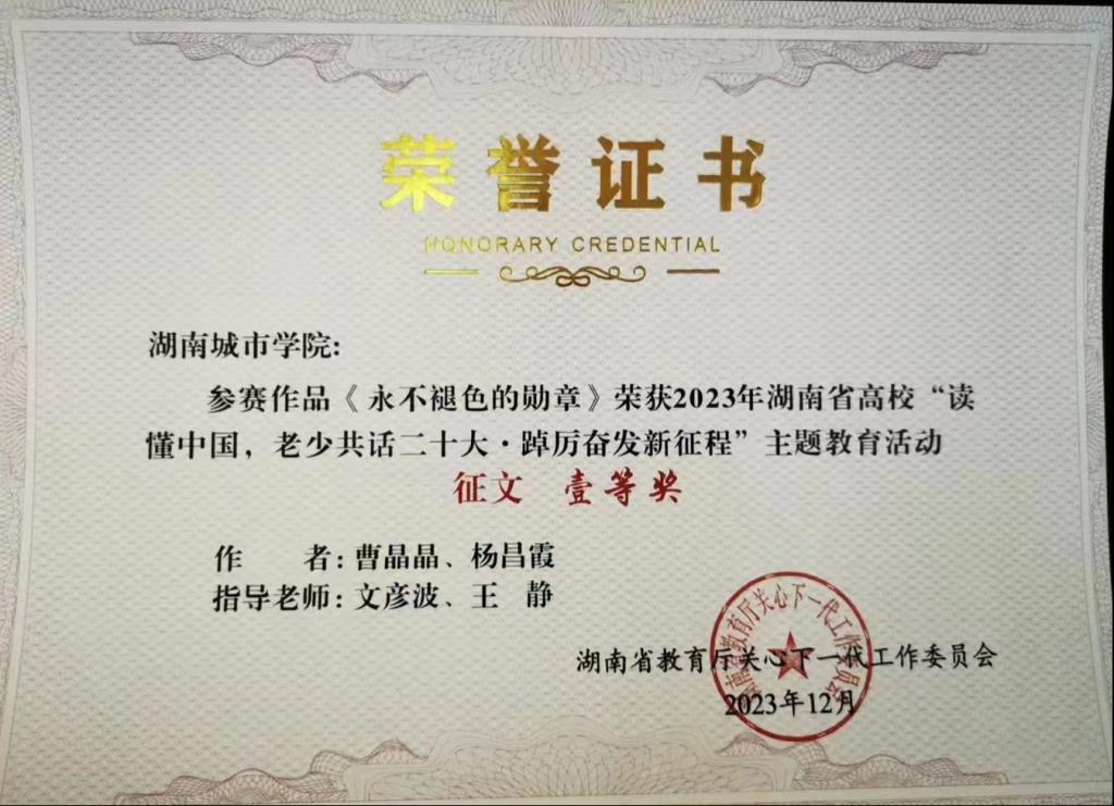 (通讯员 贺明慧)近日,湖南省教育厅关工委召开全省教育系统关工委工作会议,对全省高校“读懂中国,老少共话二十大·踔厉奋发新征程”主题教育活动进行总结表彰。公司共三项作品获奖。
